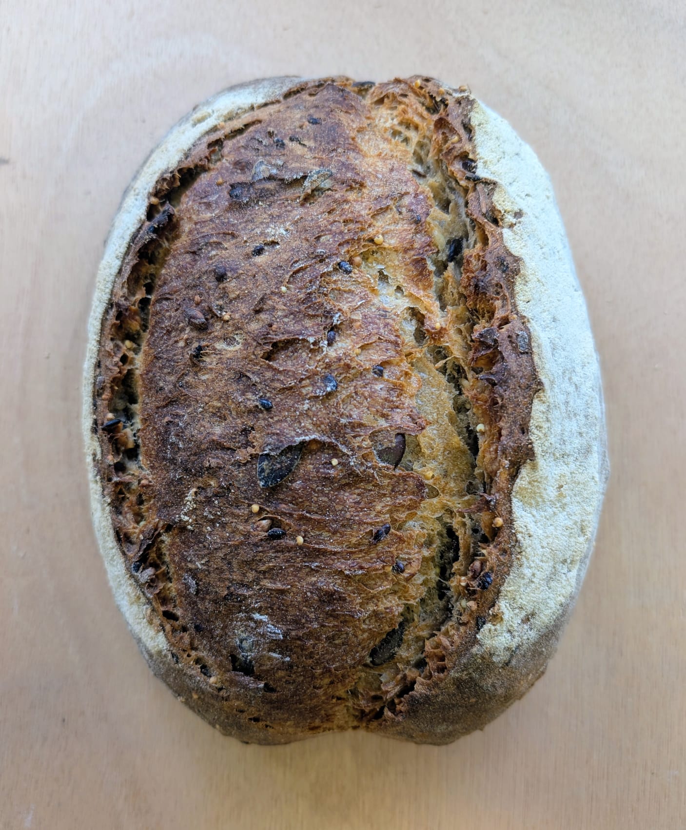 Un pain riche en graines croustillantes avec une mie finement alvéolée.
